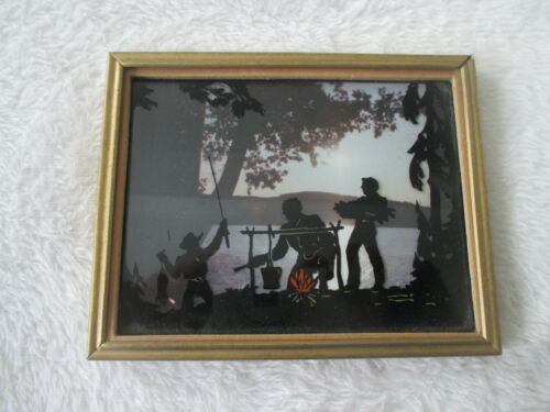 Title (ebay affiliate link): Reversed Painting On Glass Silhouette Cowboys Campfire Fishing Vintage Frame