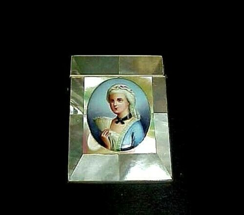 Title (ebay affiliate link): ANTIQUE MOTHER of PEARL CARD CASE w HAND PAINTED PORCELAIN of a NOBLE WOMAN