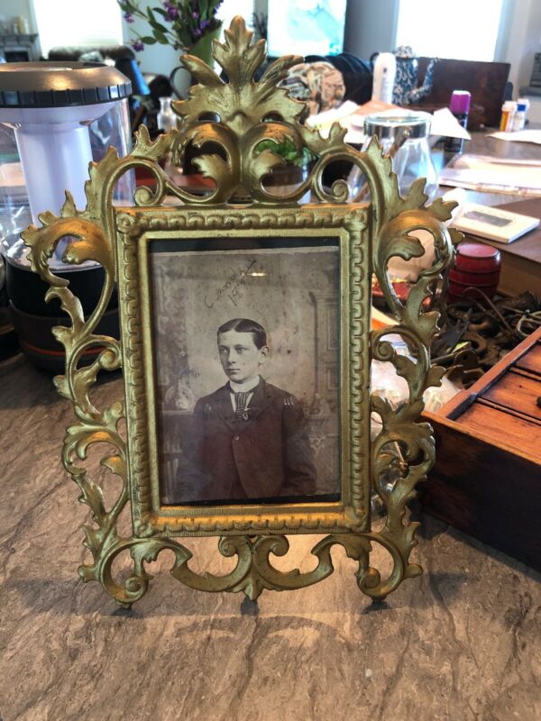 Art Deco Ornate Brass Photo Picture Frame W/1888 Portrait C.WALMSLEY, CAMDEN NJ