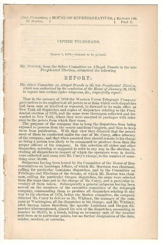 Title (ebay affiliate link): Select Committee on Alleged Frauds Presidential Election Re: Cipher Telegrams
