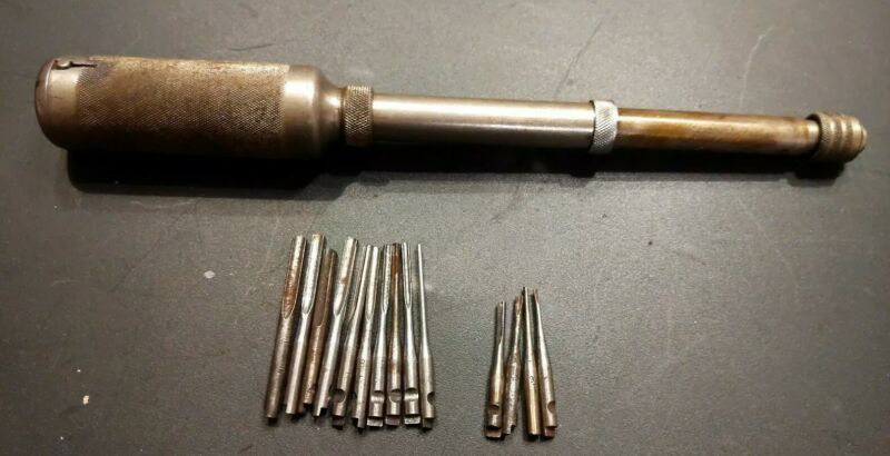 Vintage YANKEE North Bros. No. 41 Push Drill & 14 Assorted Bits w/ 3 PAT Dates