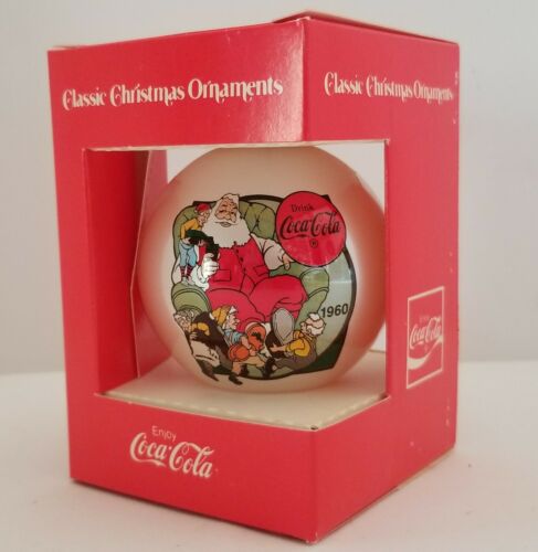 Title (ebay affiliate link): MIB VTG 1990s Era Coke Coca Cola 1960 Santa Claus Glass Ball Christmas Ornament