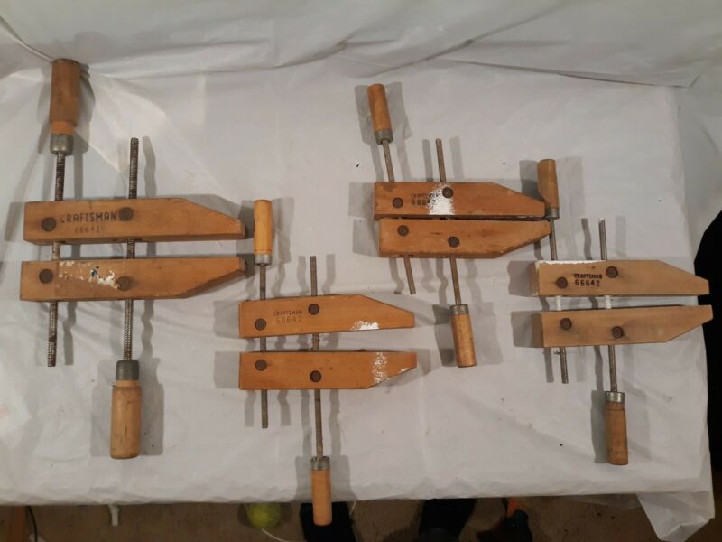 Title (ebay affiliate link): 4 Vintage Craftsman Wood Adjustable Clamps (3) 66642 & (1) 66643 great condition