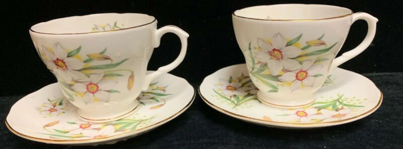 2 White Flowered Duchess Cups And Saucers (Z10)