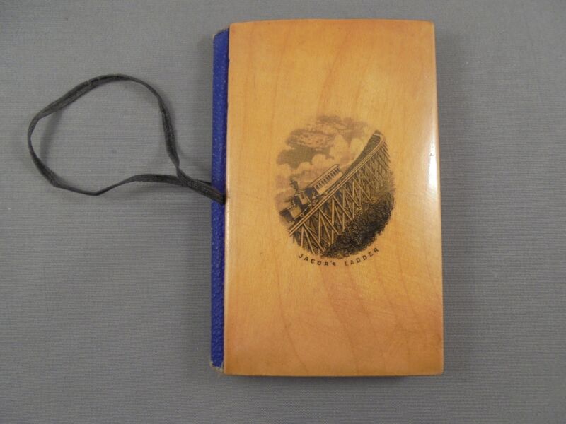 Antique Mauchline Ware Book Style Pin Case Jacob''s Ladder New Hampshire Railway