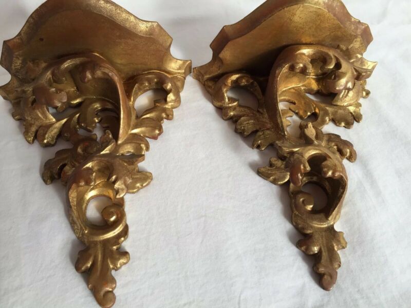 Title (ebay affiliate link): Antique ITALIAN ROCOCO Old GILT Floral CARVED WOOD Acanthus CORBEL Wall SHELF