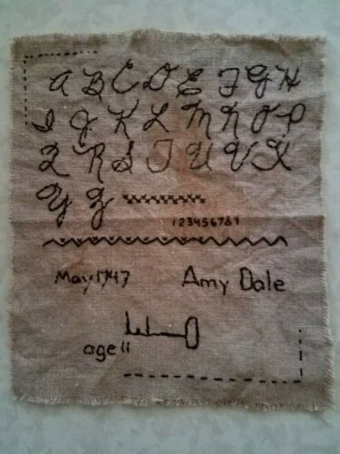 Title (ebay affiliate link): Early Style Sampler Aged To Look Old May 1747 Amy Dole Great Look !