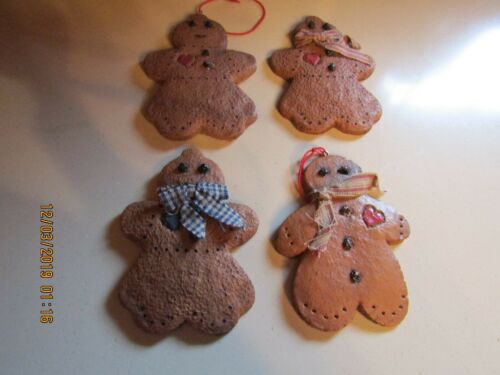 PRIMITIVE DECOR - 4 RESIN GINGERBREAD COOKIES/ORNAMENTS/HOLIDAY DECOR-SET #2