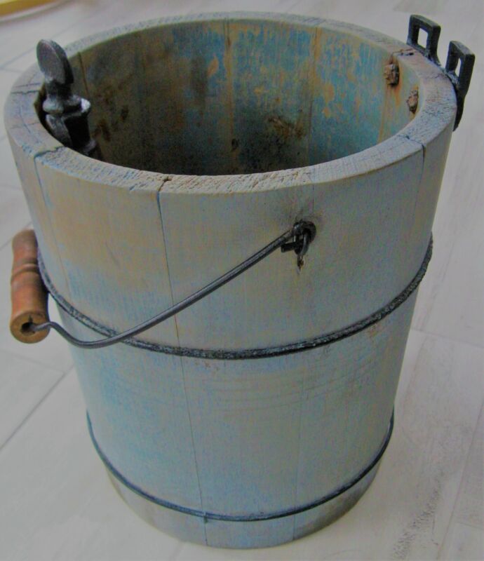 VINTAGE WOODEN BUCKET ICE CREAM MAKER Kitchen Blue Milk Paint