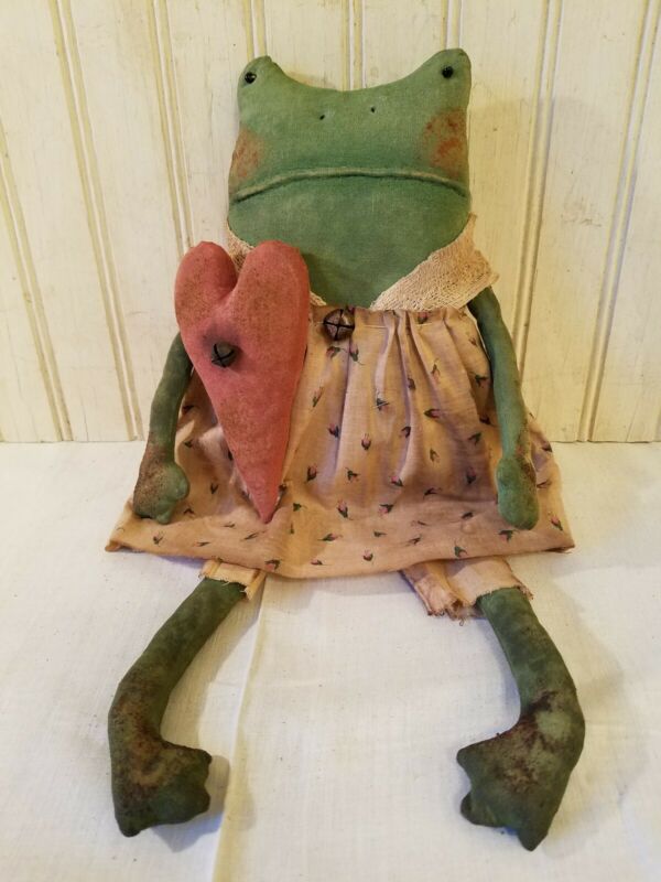 Title (ebay affiliate link): Primitive Grungy Sweet Lady Frog Doll & Her Valentine Heart