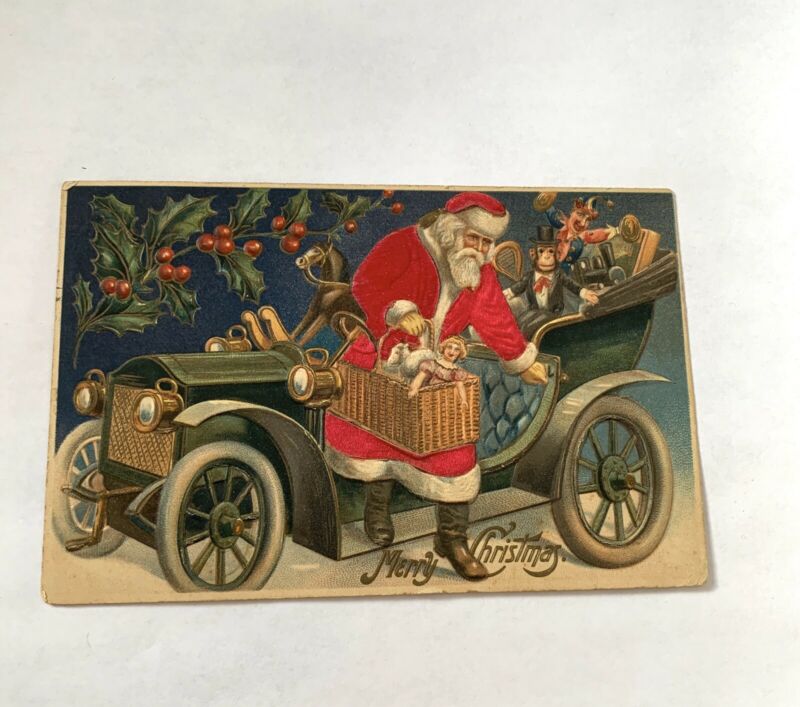 Title (ebay affiliate link): Vintage Real Silk Christmas Postcard - Santa Claus Exits Auto With Toys