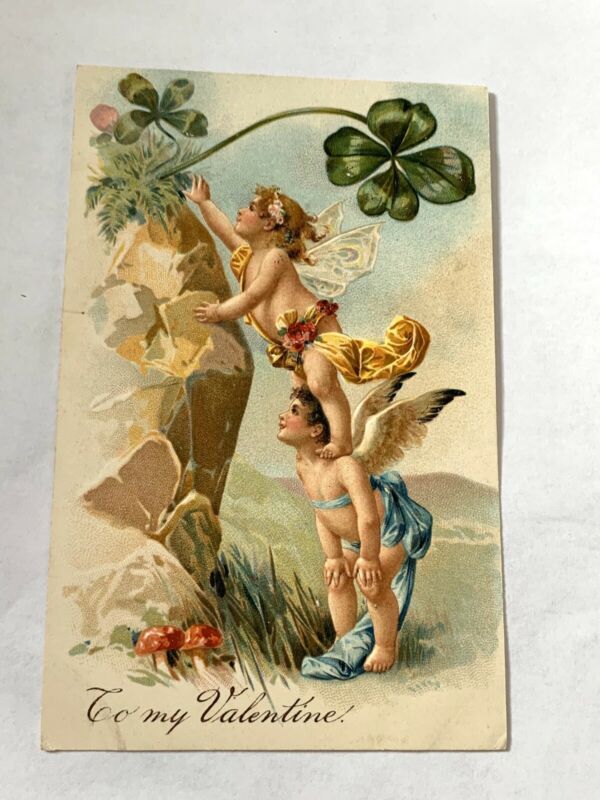 Title (ebay affiliate link): Vintage PFB Valentine Postcard - Cherubs Reach For Clover # 7191