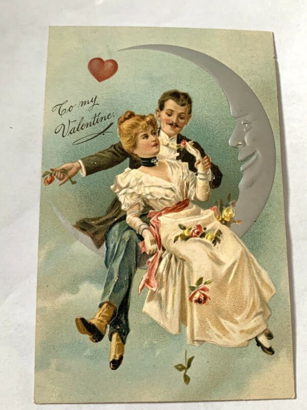 Title (ebay affiliate link): Vintage PFB Valentine Postcard - Young Couple On Silver Crescent Moon # 2 - 6859