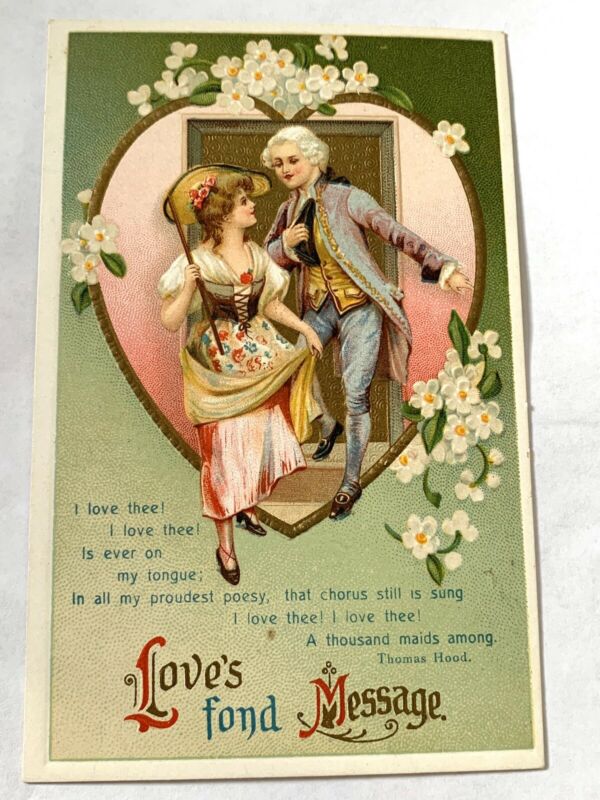 Title (ebay affiliate link): Vintage Valentine Postcard - Victorian Boy & Girl - Flowered Heart # 1389