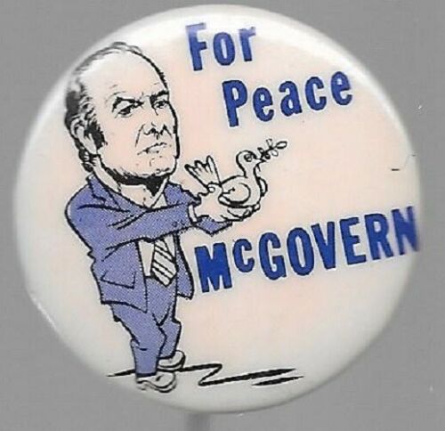 Title (ebay affiliate link): GEORGE McGOVERN FOR PEACE, CARICATURE WITH DOVE POLITICAL PIN