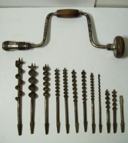 Title (ebay affiliate link): Vintage MILLERS FALLS 222 BRACE + 12 AUGER BITS Manual Hand Drill Lot Irwin+++++