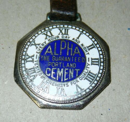 Title (ebay affiliate link): Alpha Portland Cement enameled advertising watch fob with original strap NICE!!