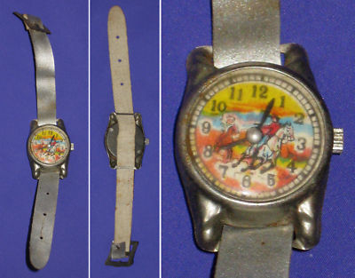 Vintage 50's era Child's Toy Cowboy & Indian Tin Watch