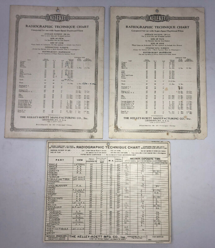 Title (ebay affiliate link): Keleket Radiographic Technique Charts X-Ray 1928 The Kelley-Koett Mfg Co Therapy