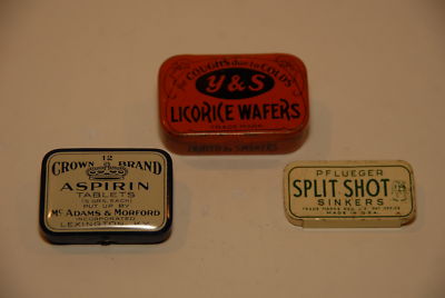 VINTAGE TIN BOX ASPIRIN SPLIT SHOT & LICORICE LOT OF 3