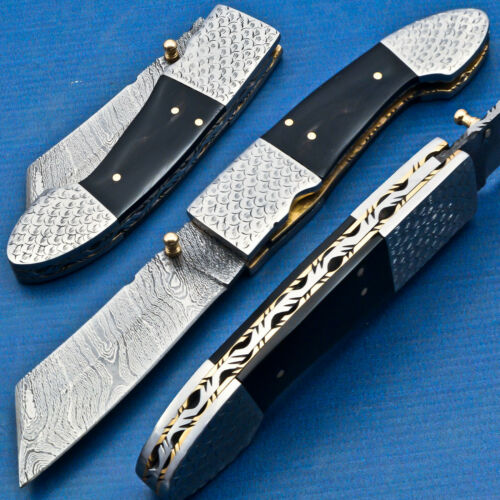 Title (ebay affiliate link): ANTIQUE!!! CUSTOM HANDMADE DAMASCUS STEEL LINER LOCK FOLDING KNIFE - BULL HORN