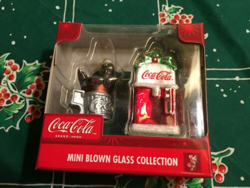 Title (ebay affiliate link): Coca-Cola Mini Blown Glass Collection Holiday Ornament Set of 2 New in box Coke