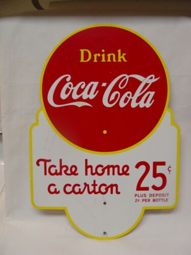 OLD 2-Sided COCA-COLA TAKE HOME A CARTON 25 Cents Coke Rack Advertising Sign