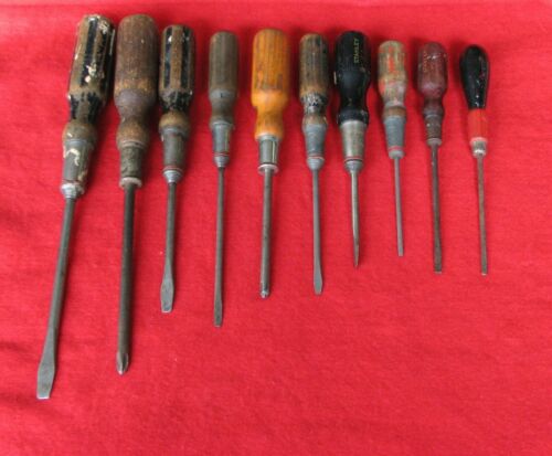 Lot of 10 Vtg Stanley Wood Handle Screwdrivers, Bell System, No. 25, 45, 55, 177