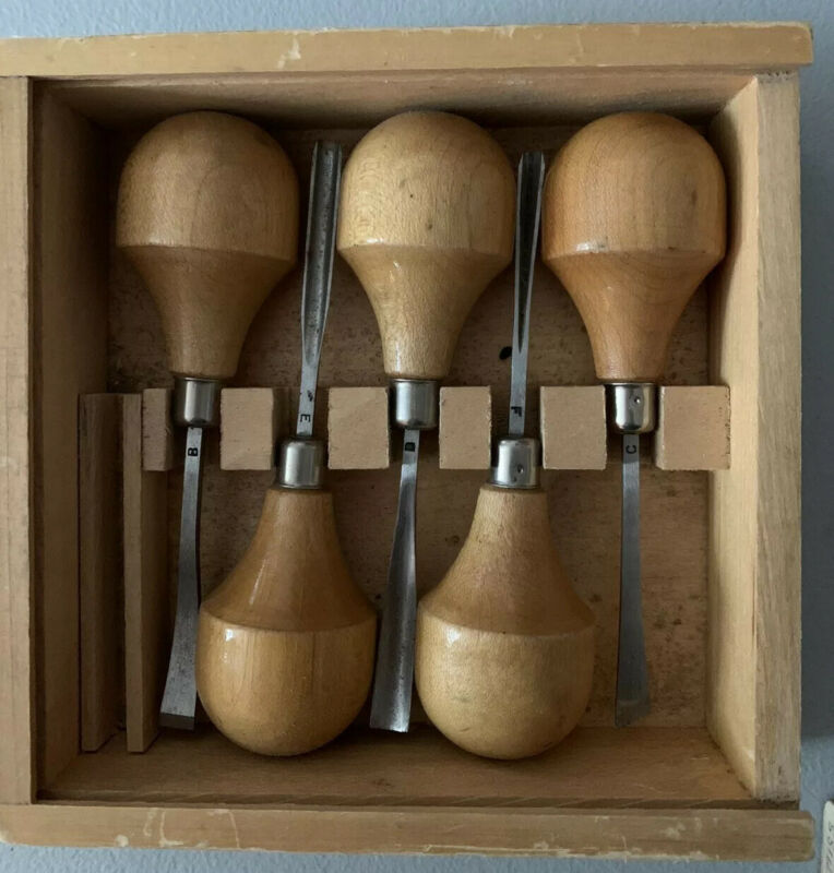 Title (ebay affiliate link): VTG MILLERS FALLS TOOLS CARVING SET NO 7 ORIG WOODEN BOX 5 CHISEL TOOLS OILSTONE