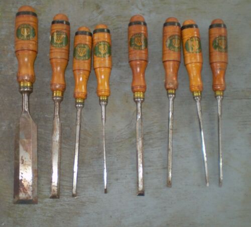 Title (ebay affiliate link): Lot of 8 Vintage Wallins Carving Chisel Wood Working Tool KB Made In Sweden