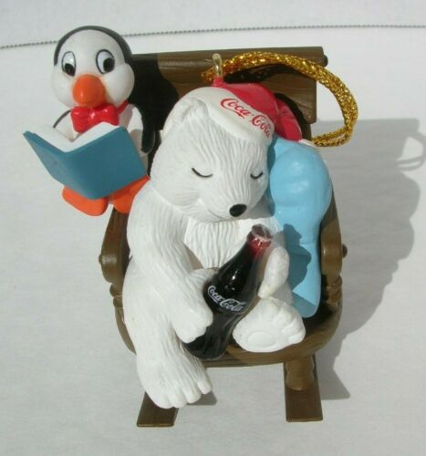 Title (ebay affiliate link): Cub in rocking chair w puffin Coca-Cola Polar Bear Cub Collection ornament 1997