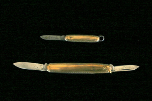 2 ANTIQUE GOLD HANDLED FOLDING POCKET KNIVES