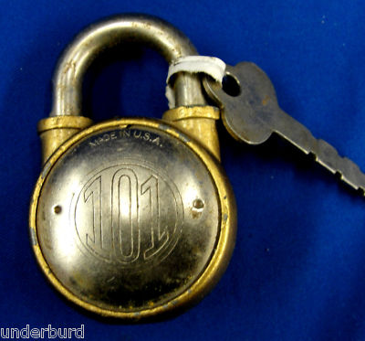 VINTAGE BRASS PADLOCK WITH KEY MADE IN USA