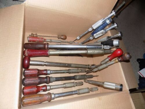 Title (ebay affiliate link): 17 VINTAGE PUSH DRILLS AND RATCHETING SCREWDRIVER LOT STANLEY YANKEE GOODELL MIL