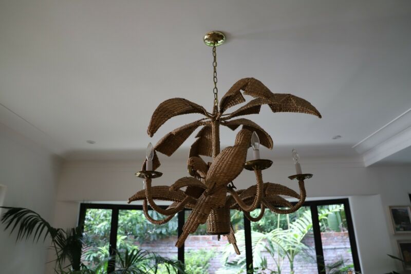 Title (ebay affiliate link): mario lopez torres chandelier woven reed parrot tropical palm brass rattan bird