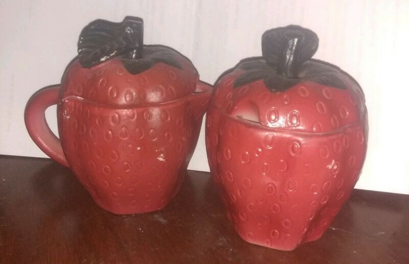 Vintage Strawberry Fruit Sugar bowl and Creamer Set