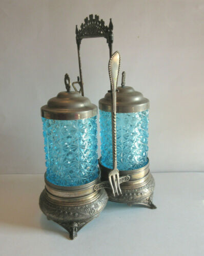 Title (ebay affiliate link): Victorian Blue Daisy & Button Glass Double Pickle Castor Middletown Plate Co