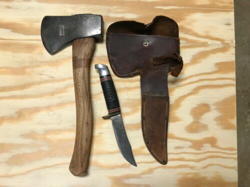Title (ebay affiliate link): Original Genuine Plumb Scout axe, Western knife and sheath.