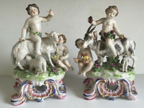 Title (ebay affiliate link): LARGE Matching Pair Antique Samson Porcelain Figurines Putti on GOAT and SHEEP