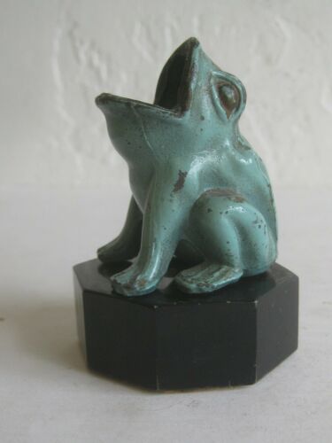 Antique FROG FIGURAL COLD PAINT CAST METAL ENAMEL ASHTRAY PAPERWEIGHT STATUE Vtg