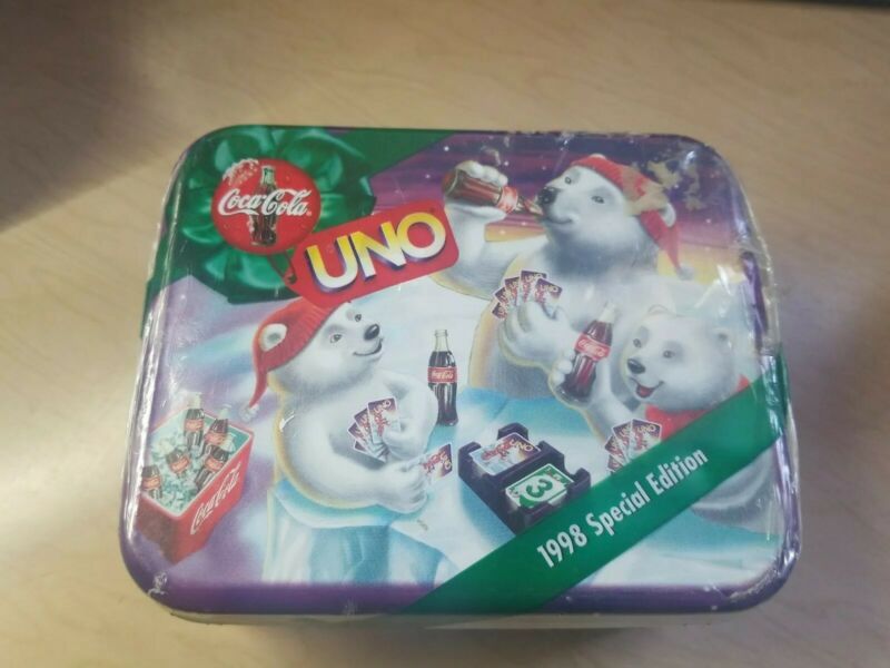 Title (ebay affiliate link): Sealed 1998 Special Edition UNO Coca Cola Polar Bears Coke NIB Tin