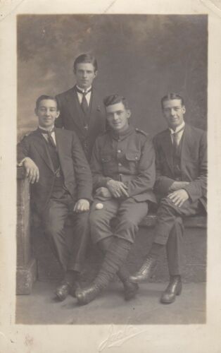 OLD VINTAGE PHOTO GROUP HANDSOME MEN MILITARY UNIFORM SWANSEA F5