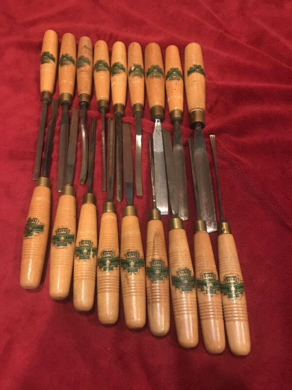 Title (ebay affiliate link): Vintage Henry Taylor Acorn Wood Carving Chisel Set, 18 Pieces, Great Labels.
