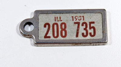 VINTAGE ILLINOIS 1951 DAV KEY CHAIN METAL LICENSE TAG