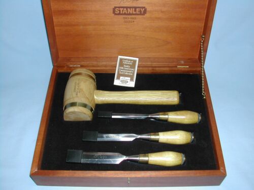 Title (ebay affiliate link): Beautiful Set of 3 Stanley SW Everlasting Chisels & Mallet, Unused in box
