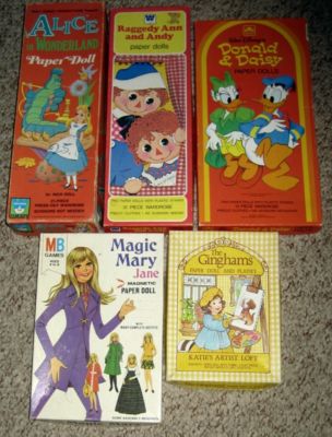 Title (ebay affiliate link): 5 Vintage Paper Doll Box Sets Raggedy Ann Disney + More