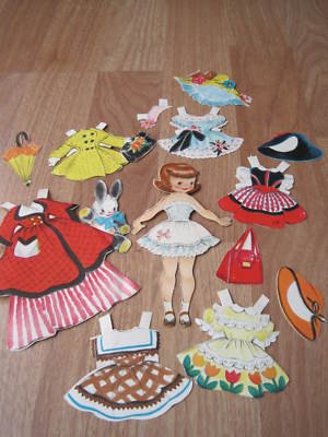 Title (ebay affiliate link): Vintage 1950s Paper Doll Set Clothes Accessories