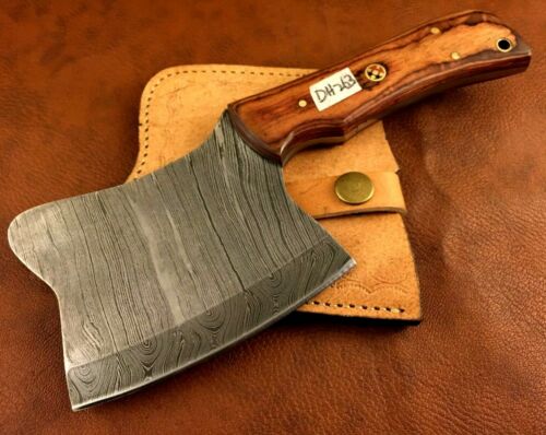 Title (ebay affiliate link): Handmade Damascus Steel Axe-Hatchet Functional-Camping-Hiking-Sheath-Dh263
