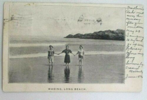 Title (ebay affiliate link): Souvenir 1906 prelinen postcard of Wading Long Beach