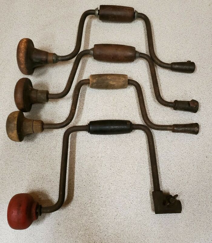 Title (ebay affiliate link): Vintage lot of 4 Hand Bit Brace Drills,Old Carpenters Tool,Various Styles